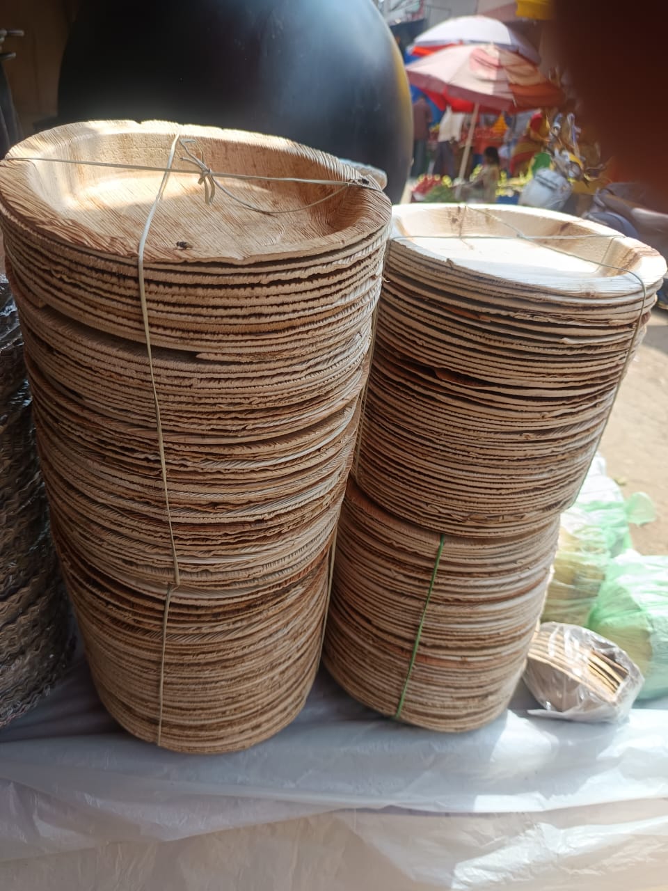 Eco-friendly leaf bowls used for serving prasad and offerings.